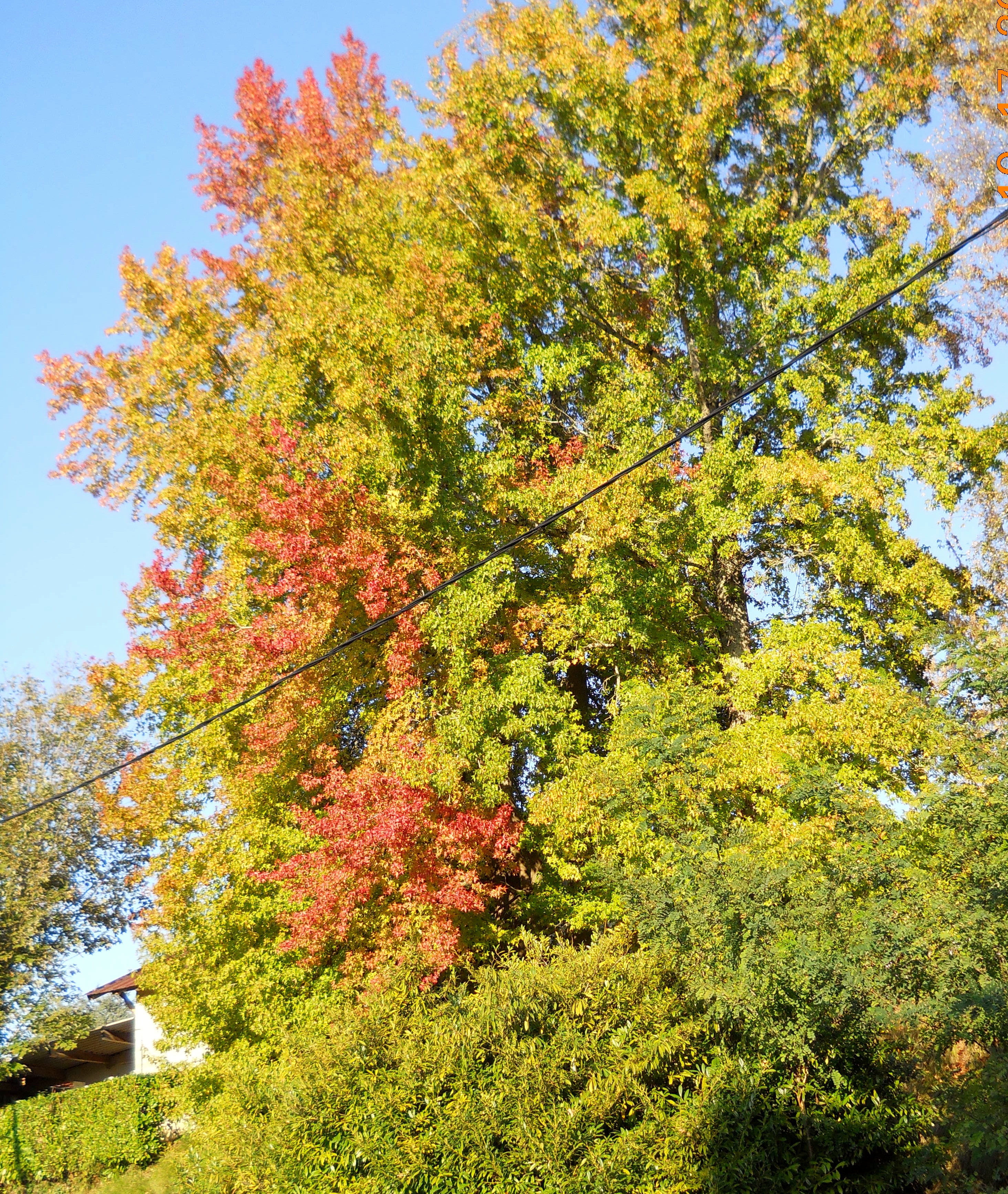 So today I make time to take down the boxes with my winter clothes and refill them with the summer things I won’t use again till next year. Outside my window the leaves of the Liquidambar, better known in English as Sweetgum, are turning red and gold and the climbing ivy on the building behind mine has taken a deep blood red color.
