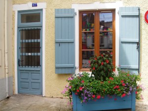 Why, only the other day, as I walked with Salomé towards our usual destiny she suddenly crossed over to the sidewalk in front. Naturally, not wanting her to be crossing back and forth under possible cars, I joined her and we began walking on the side of the street never taken before. Suddenly, I was in a different town or at least on a different street. The houses I passed (on the other side) had never been seen before for I was always walking directly under them. All at once I saw a whole array of new windows and colored shutters and French doors and differently sloped roofs and painted or unpainted walls. I walked past windows through which I got peeks of different lives inside the béarnaise houses. I noticed which buildings were in need of repair and which had already been prettied up. And this doesn’t only happen when I am going to the Café, it happens every time I leave my building, every time I glance out of my windows (and there are three directions and five windows I can look out of) at every moment of the day, I discover a new world outside, one never seen before, created in each instant anew until the heart can hold no more beauty, no more joy and I must stop looking and do something normal.