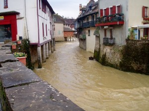 Since I came to Salies, nothing ever seems the same. What I mean is that each time I walk down a street, the same street, everything I see is different, like a kaleidoscope shifting unrecognizably with each tiny move. Is it because I am more present? Thinking back, remembering, I can see how my life has always been lived projected into the future, perchance a very near future, but future nonetheless; or dragging helplessly behind, hanging on to the past that has already gone its way. Yet, since moving to Salies, something has shifted. For example, when I leave my apartment to go for coffee each morning, I walk the same sidewalk, traverse the same parking lot, take the same street, cross the same small bridge over the Saleys River and arrive at the same Café des Thèrmes to meet the same Kiwi-san and order coffee from the same Madame Ça-Marche!, and yet the moment I step out of the door, each day, everything is different. I am immediately in full presence before the new sky, the blueness or cloudiness of it, the thousand variations in color of the trees, the damp or dryness of the sidewalk, a flower that wasn’t there yesterday, the way the light falls on the cluster of ancient tiled roofs on the sixteenth century béarnaise houses that line the street, each person who crosses my path, each new voice saying “bon jour”, the sounds never heard before, the newly fallen leaves in the parking lot, a potted plant on a window sill that has suddenly burst into bloom, a basket someone carries overflowing with vegetables, the black dog I didn’t noticed yesterday, birdsong that never rang out in the summer months and now accompanies each step, gnarled branches no longer hidden by leaves, each and everything changed, shifted, re-colored, moved.