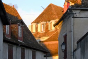 The morning air is still quite cold so I slip my hands into a new pair of gloves bought last Saturday in San Sebastian.  The walk to the Café des Thèrmes is short, no more than half a kilometer, but I take my time, stopping here and again to view the shifting sunlight on roofs, a doorway I hadn’t noticed before, to say hello to a neighbor or, sometimes, a complete stranger that has stopped to caress Salomé.