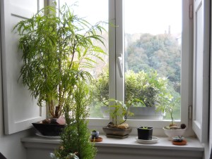 By 8:15 I’m out of bed. I turn the radiator on and close the window. Next stop: the kitchen. I don the reading glasses I’ve left on the counter and check the indoor window sill for gnats. My house has been a war zone for over a week and every time I think I have won, three or four little critters appear on the sill, sometimes still alive. Today there are four; one is moving. I take a Kleenex and crush it and then sweep the rest into the garbage. The war isn’t over. Although they have stopped pirouetting between the computer screen and my nose, they are still being born somewhere.  Roselyn, who does my cleaning, has suggested ground pepper on the plants (seeing as the vinegar was an absolute failure, not attracting even one). Obediently I grind pepper into each pot: it smells better than the vinegar; I wonder if the gnats will begin sneezing and then instead of seeing them I will hear them. Today, before leaving for coffee I will spray the sills once more. I know: shame on me… but this is war and I intend to win rather than having to eliminate my beloved plants.