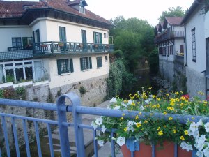 As we cross the bridge over The Saley’s river, the sound of running water reaches my ears. Last week’s rain replenished the water way and eliminated a slight stagnancy which could have become unpleasant. The river is not overflowing the canal that takes it through town, but precisely at this bridge it spills out again into its natural causeway and seems to delight in announcing it in gurgles and splashes.