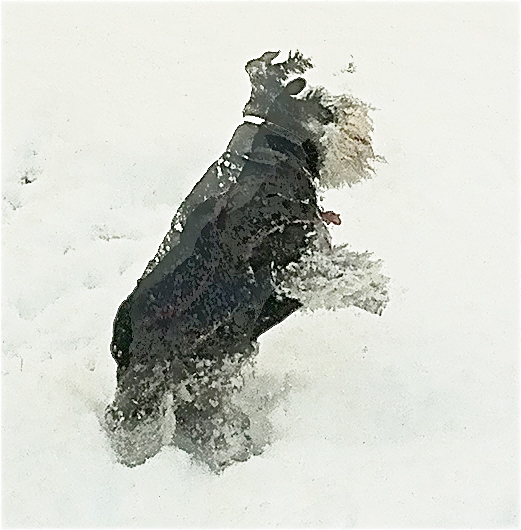 Today, little by little, the fountain recovers its liquidity; I don three layers less of clothing to take our afternoon walk, and Salomé is not submitted to the torture of having her overcoat slipped on before leaving the house. It might be a sign that spring will begin to come now. There is a delicate drizzle, something I call “misting”, with droplets so fine that it is perfectly all right to walk without an umbrella.