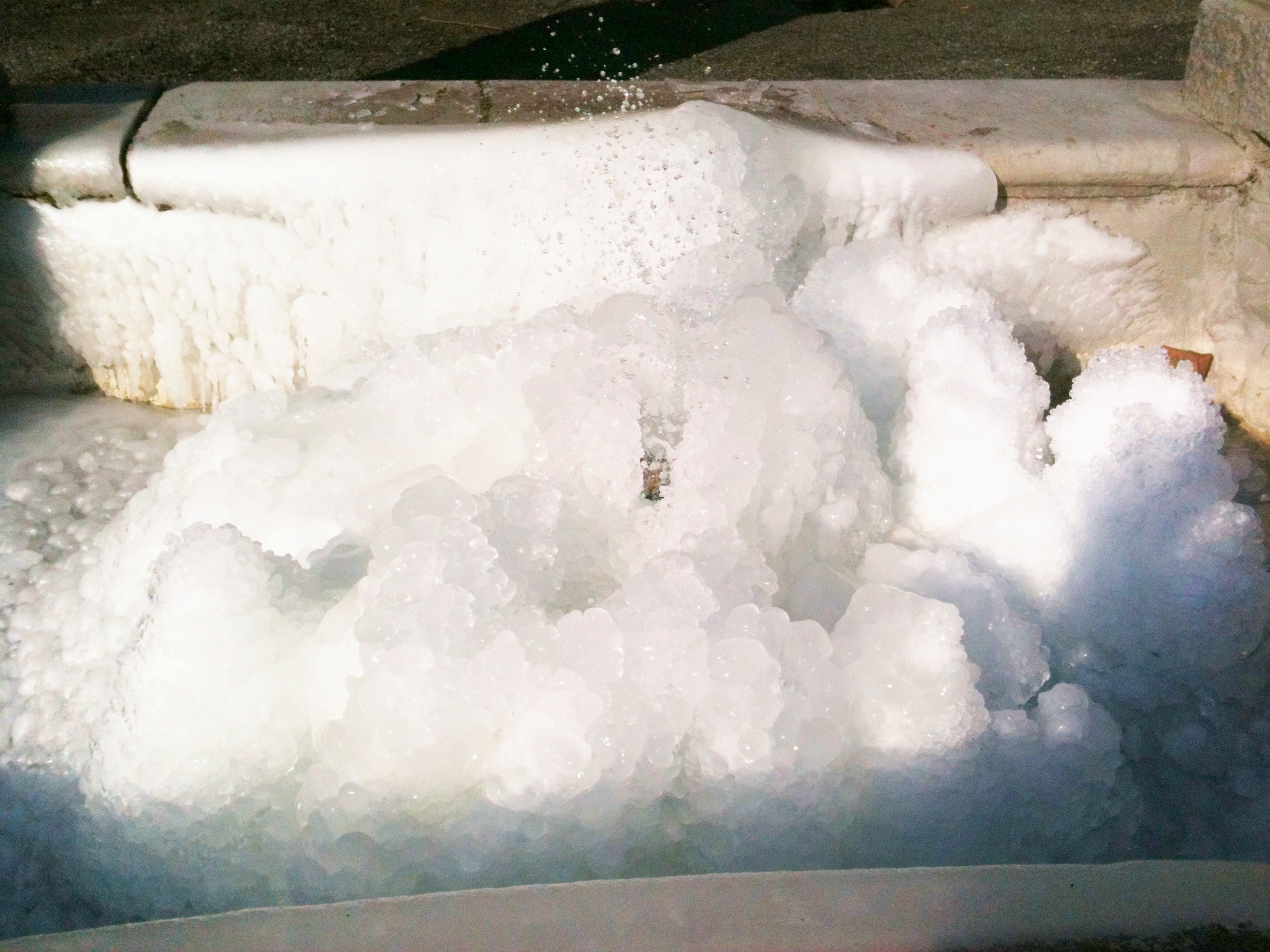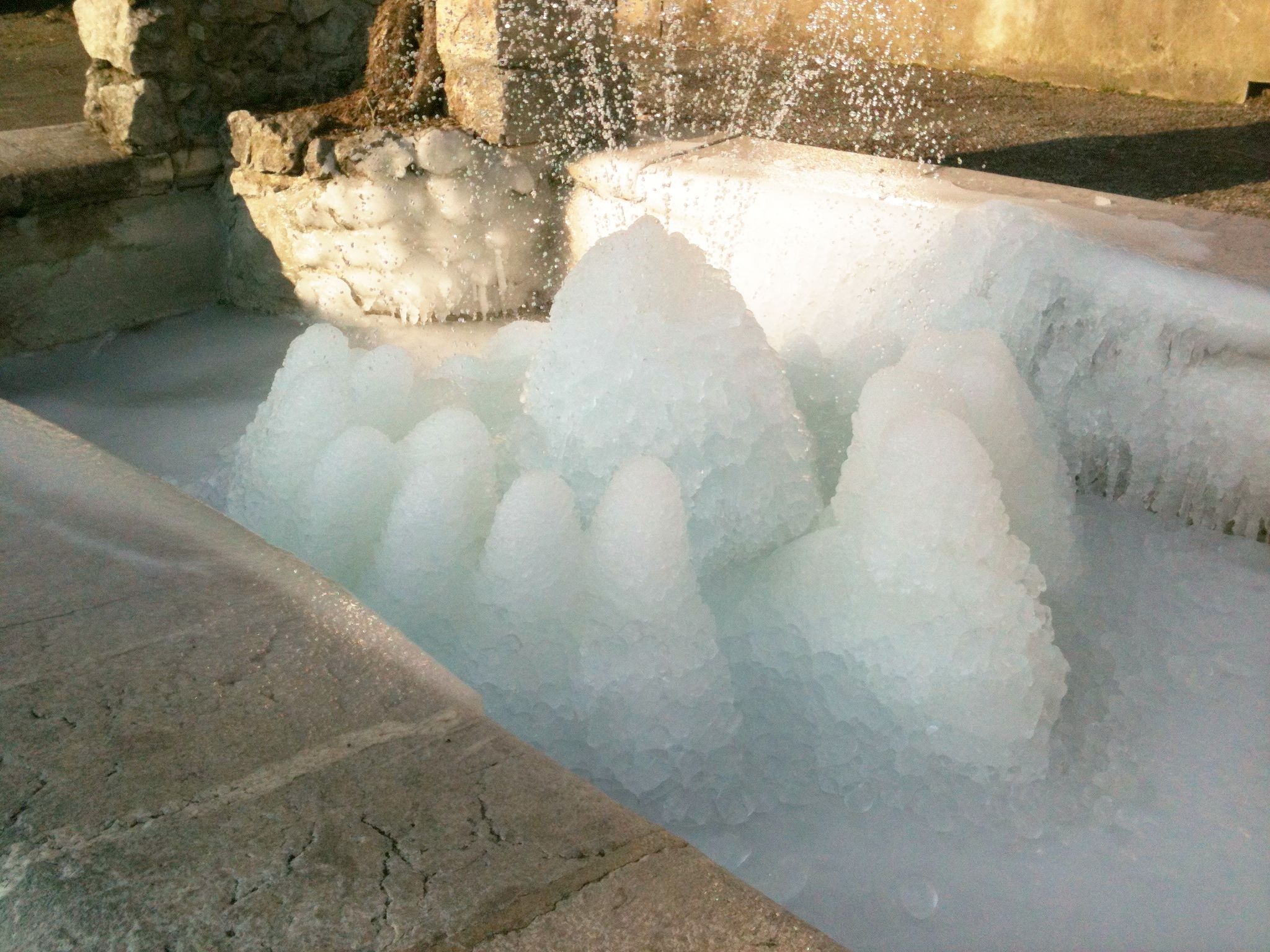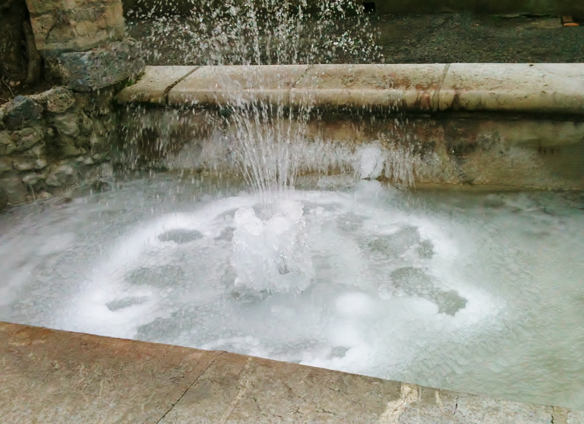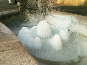 Of course, I do not own a pair of long-johns (or wooly underwear) so layers were the only solution. Layers are also more convenient if one goes into a warm place for any length of time: they can be taken off gradually. It is what I call the intelligence of onions. And just as I put layers on to go out, the fountain, with daily minus temperatures, put on layers of glittering ice.