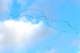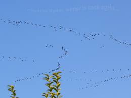 Today I once more heard the distant cries and this time I knew to look up. There they were, flying now in the other direction: north, thousands of them squawking up a