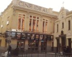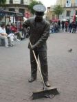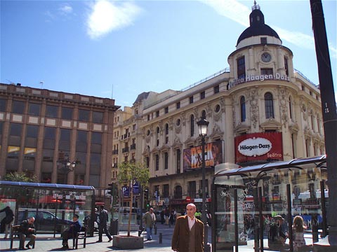 So we crossed La Puerta del Sol, passing the living statues, the spontaneous musicians, the fountain decorated with bright pink spring azaleas, the milling tourists and groups of youths plugged into their I-phones and mp-3’s, and walked up Carretas Street to the Plaza Jacinto Benavente (Spanish playwright, and producer, director and scriptwriter of movies from the last half of the nineteenth and the first half of the twentieth centuries).  The two most emblematic features of the Plaza are the Teatro Calderón, one of the oldest and most famous of Madrid, now somewhat strangely renamed “The Häagen-Daz” Theater as it has been bought by the owner of the famous ice-cream, and the marvelous bronze statue of an anonymous street sweeper. The movie house we were headed for is located to the right of the theater and slightly further back. It is one of the largest within Madrid itself, with nine screens playing movies only in their original version (with subtitles, but not dubbed).  To make a long story short, The Artist –which was the movie we originally wanted to see- was playing too late for us to be able to reach the theater in time, so we chose a less prestigious George Clooney film, bought a large container of popcorn and settled in to my favorite sport. The movie was mediocre at best, but I managed to get teary a bit at one point (my ex-husband used to tell everyone that I even cried in Jerry Lewis films) and when it ended we had more than enough time to get to the theater. The Plaza was full of people arriving or leaving the movie house and the crowd on the corner made it difficult to cross the street, but we managed just in time to hail down a passing taxi.