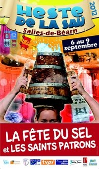 The Heste de la Sau (Fête du Sel in French) or Salt Festival is the principal yearly happening in Salies. When summer has been spent, when kids are back in school, when the public officials are working again and most people have ended their vacations, Salies throws caution and economics to the wind and goes all out for four days. Activities that seem to gain momentum with each passing day mark the town’s celebration of the product that has justified and enriched its existence since at least a thousand years ago: salt or ‘white gold’ as it is often called here. At the center of Salies, the Place Bayaa, there is an underground source, which the inhabitants of the town have exploited first manually and now industrially, that contains water said to be ten times saltier than the sea. It is called “La Fontaine Salée” and it is said to have been used for salt production since the Romans lived here, through the Middle Ages and up to today. At present, the Source is completely paved over and the salt water piped to the salt plant on the outskirts of town.