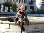 Sure enough: as I stepped out the door with four layers of clothing on (undershirt, pullover, sweater vest and coat), a brand new wool scarf (gift from Kiwi-san) and woolen gloves on I felt the bite of cold pinch my cheeks. It felt good. The sky was bright blue, after days of rain and clouds and the sun was gleaming down through the rain-washed air as if it were brand new and not the old, tired, almost worn-out sun that scientists tell us we have. It was easy to believe the world was perfect as I sat on the fountain in the center of town waiting for Kiwi-san. After having our coffee, I refused his offer to drive me home because it was the perfect day for a walk.
