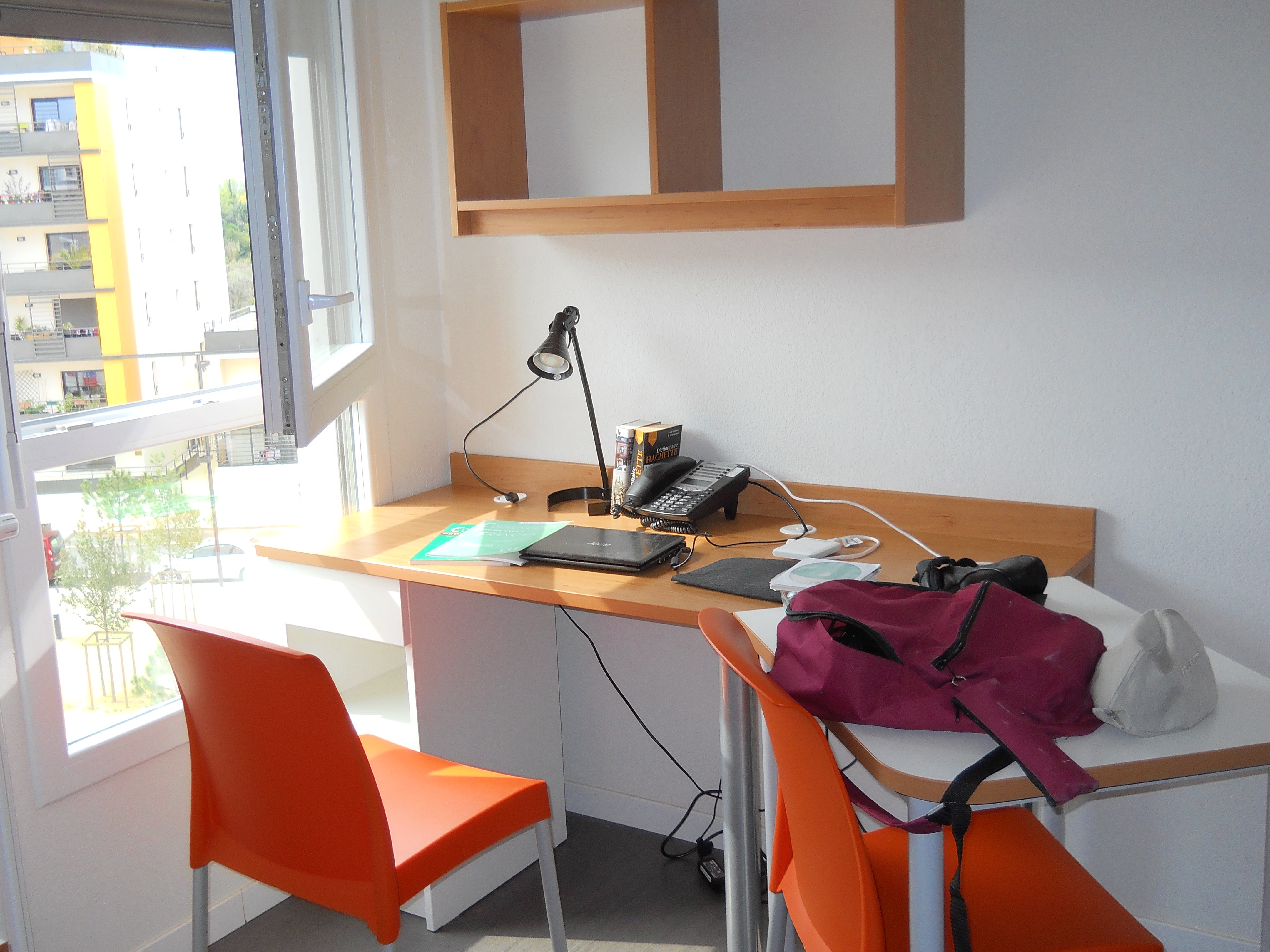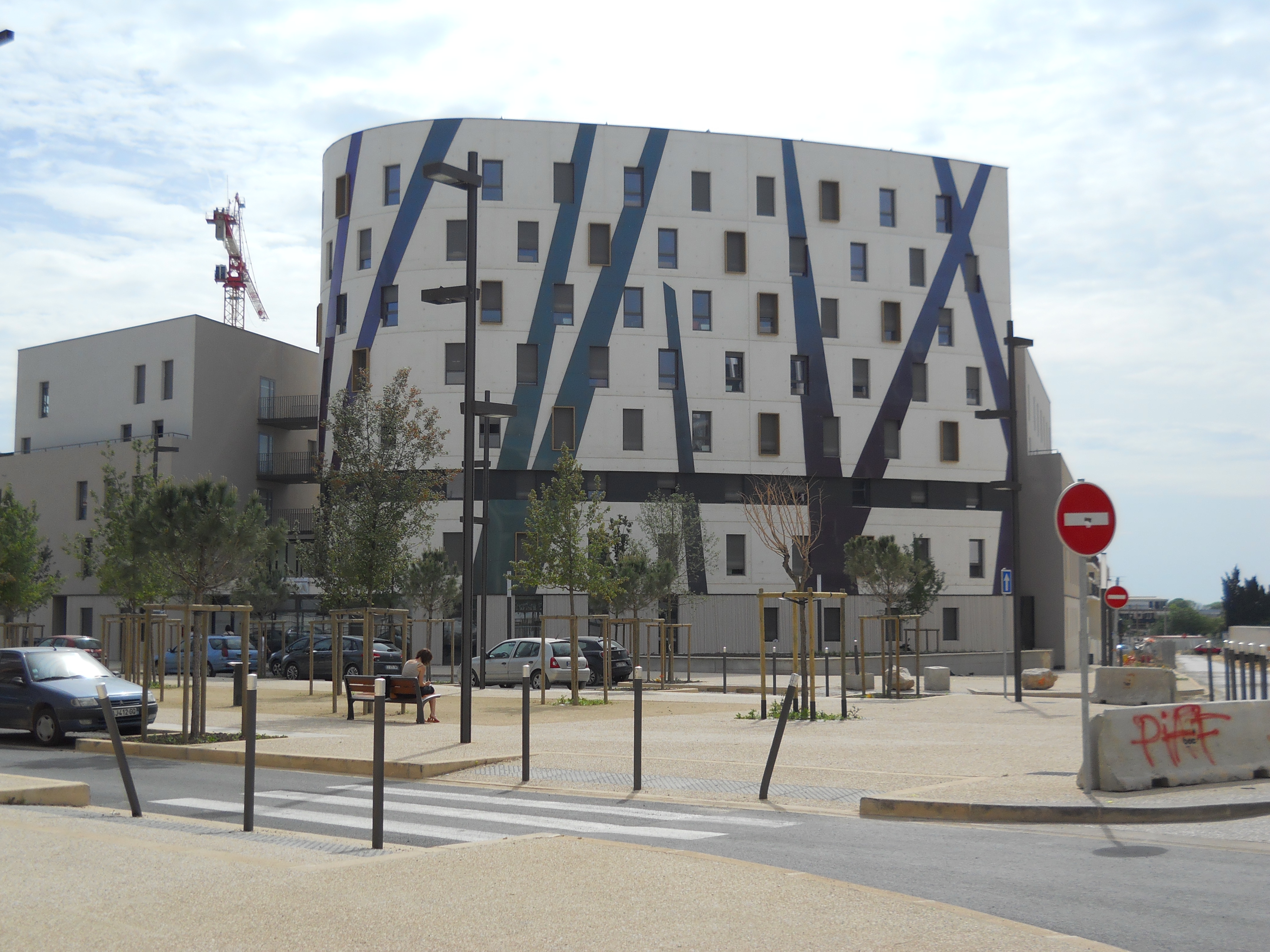 The last thing I expected to find in Montpellier was peacocks: Seagulls maybe, pigeons undoubtedly, sparrows and crows and other big-city vermin, no doubt… but peacocks? Nonetheless, the moment I opened the window to this small studio, their unmistakable and unmusical call entered my ears. Somewhere between a caterwaul and a squawk, the peacocks announced their readiness to mate. It was Sunday and here, in this area of the city with is completely under construction, nothing seemed to be moving but the dust from half finished constructions and unpaved roads. Cars were parked all along the yet-to-be-paved boulevard that had stubbornly refused to show up on my GPS as I desperately looked for my assigned residence; construction machines stood immobile like prehistoric pterodactyls waiting for JurassicMontpellier 2 041 Park to be planted and grow; something that eventually will be a sidewalk lay in the afternoon sun like a discarded strip of masking tape.  The streets and the future boulevard (already with a center walkway and recently planted trees that will, someday, shade it) were devoid of people, and in that hush that Sunday can sometimes bring, the peacocks were having a grand time announcing their peaking sexuality. I immediately considered the problem of sleeping with the window open, but there was too much to do to dawdle over future problems so I mentally blocked out the noisy birds and contemplated the chore of setting up house for a couple of weeks in the 18 sq. meter space.Montpellier 092Montpellier 091