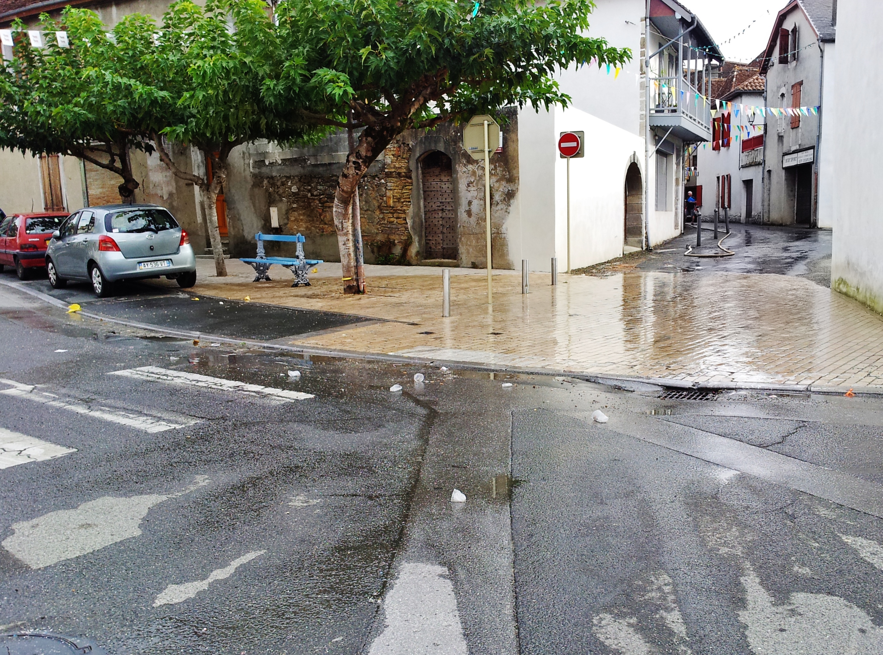 It is Tuesday morning and Salies is still in the process of cleaning up the mess. “Mess” is what “fun” is called after the party is over.  The last empty plastic glasses, the last multicolored streamers, the last vestiges of confetti are being swept away by water;20140916_095848 the streets are being hosed down by water from the fire hydrants and it looks as if it had just rained. So much so, that Josée, one of the ladies I have coffee with every morning who will be 92 this November, took one step outside and rushed back upstairs to get her umbrella; it wasn’t until she got 10 yards from her house that she realized something was wrong because her neighbor was cracking up with laughter. It made for fun as we 20140916_100049sipped our morning brew.