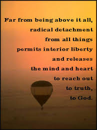 For instance: I am cleaning out clothes and I come across a pair of pants I haven’t worn all winter. For a moment I contemplate putting the pants in the “out” bag, and then my mind says: ‘It’s your only pair of green pants; what if you want to wear that green sweater next week?” When I had looked at the pants a split instant before and had separated them from the others in the closet, it was because I saw that they were out of date, worn at the sit-downs, slightly faded…  It was the mind: the thoughts about the ‘loss’ of the pants made me feel fear, fear of a non-existent future where I would suddenly exclaim “¡Oh, I never should have thrown out those pants! ¡Now I have nothing to wear with the green sweater!” and these thoughts had nothing to do with the actual pants in front of me. Without a thought, the pants are gone; I am not attached to them ever, only to my fearful thinking about the pants.detachment