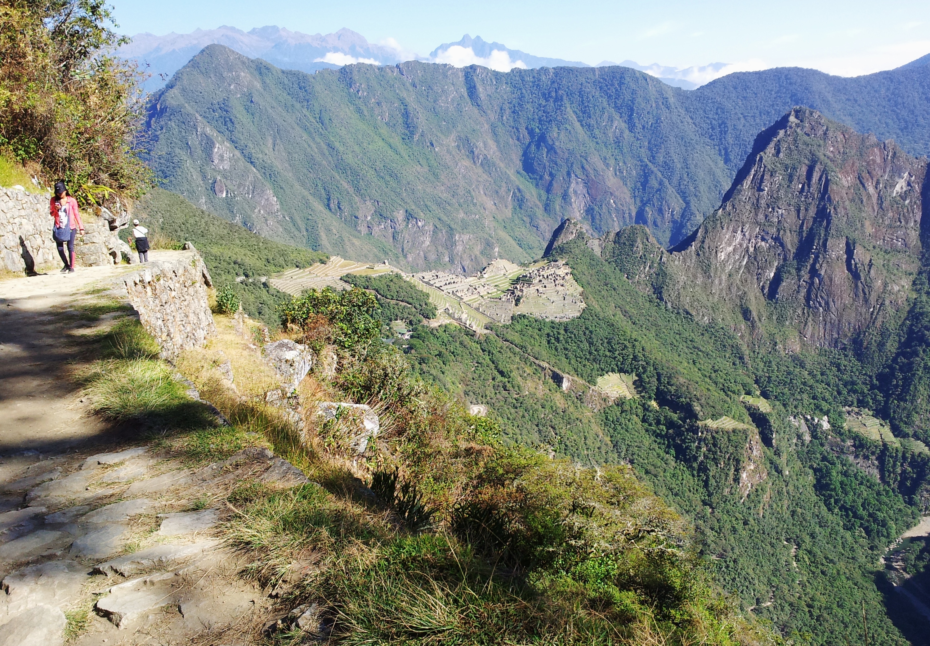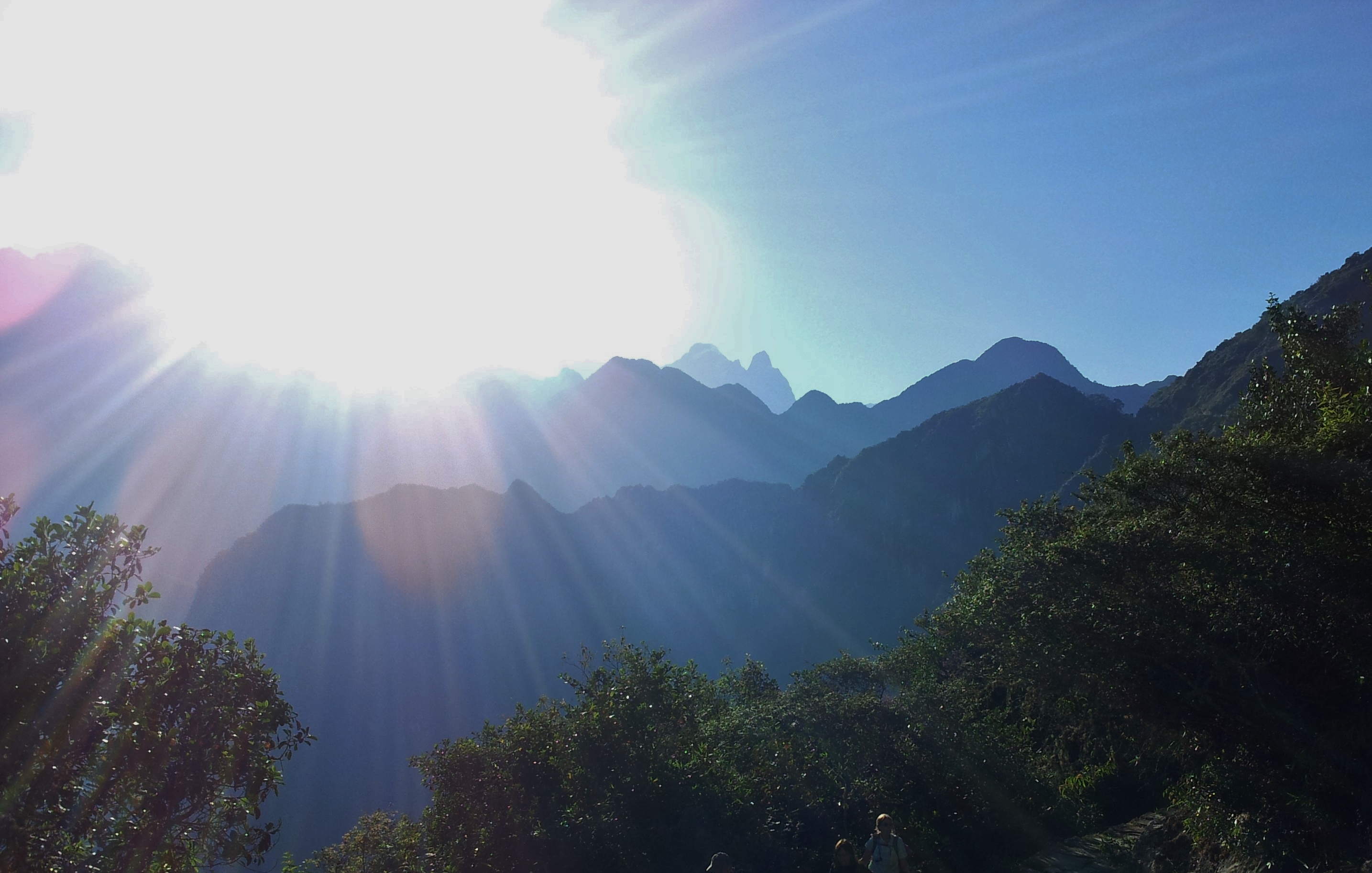 impossibly perfectly fit, how difficultly moved- that humans might have left organized or scattered over a tiny part of that landscape… those mountains and crags and peaks dwarfed everything around in their overbearing majesty. They were the gods the Incas saw and adored, their snowy glaciers glimmering in the sunshine against a vibrant blue sky; the mountains, the cliffs, the Apus… that was what I had gone for. When, against all my expectations, I climbed to the Sun Gate at the top of the Machu Picchu mountain, constructed over 2 kms above the famed site, and