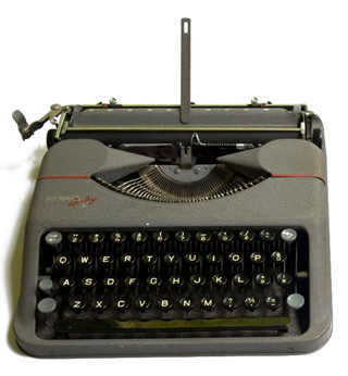 My first typewriter, which appeared the Christmas of 1958 beautifully wrapped, wasn’t very big; as a matter of fact, it was tiny and suited its name to a T: “Hermes Baby” which, according to mytypewriter.com “is the Mini Cooper of typewriters!”, and if you have ever had a Mini Cooper –as I have- you know what that means.