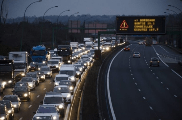 I left La SPA after five so it was night by the time I reached the outer limits of Toulouse. What I encountered coming back was this (an actual picture taken from a newspaper report of the problem):