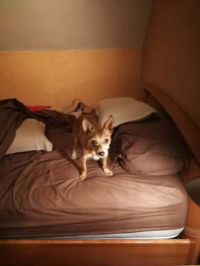Even the name said ‘Love Me’, but the look and the fact that she was so similar to Loli-dog in size and appearance told me –in no uncertain terms- that I had to have her. Unfortunately, Juliette was not close by, but halfway across the south of France to a place called Perpignan, a four-hour drive even going at top speed which is 130 kms/hr.